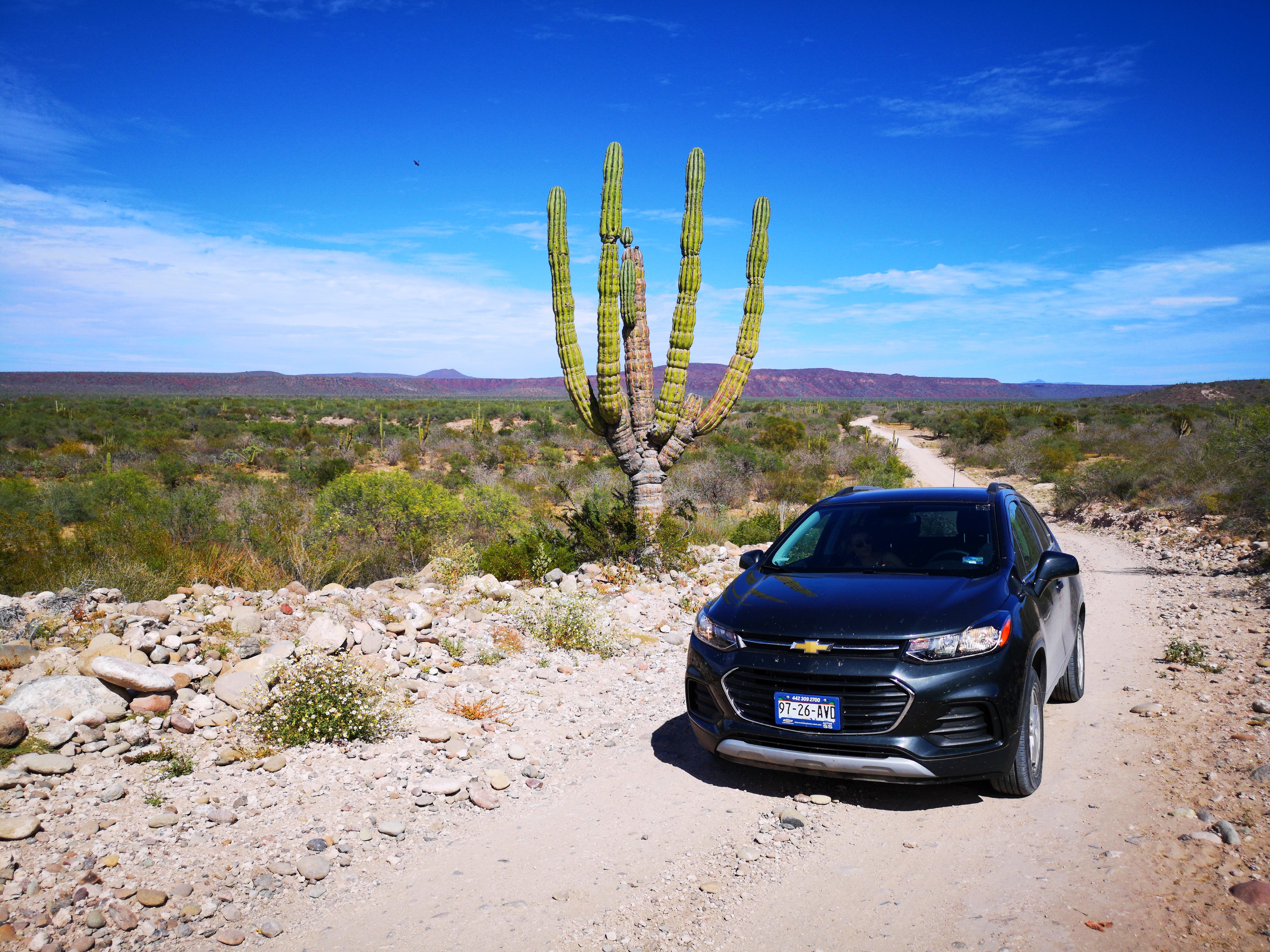 From Loreto, we headed towards the west coast. We drove the “scenic” route via San Javier, where we looked at one of the oldest Spanish missions in Mexico and a 300-year-old olive tree. We then continued taking a road that Google Maps made look better than it actually was. At that point, we were very happy that we got an upgrade to a mini SUV when we picked up the car! The scenery and massive cacti along the way were definitely worth the increased heart rate when crossing creeks and driving along the unpaved roads in the middle of nowhere (we literally did not see a single person or car in over 2 hours!)